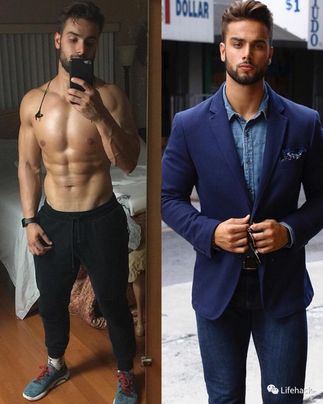 男人的身材好不好,人们通常都会用“穿衣显瘦,脱衣有肉”来作为评判标准,不过,这个词还真不好在脑海里勾勒出具体的胴体画面来。而下面这组脱衣前后对比图可以完美地让大家理解一下,什么叫真正的“穿衣显瘦,脱衣有肉”!