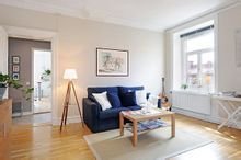 北欧风格的居家家具,浅淡的色彩、洁净的清爽感,让居家空间得以彻底降温。客厅空间的布置重点在于家 典型现代瑞典一居室具的选购与色彩以及布品的搭配,协调、对称的技巧,让每一个细节的铺排,都呈现出令人感觉舒适的气氛。