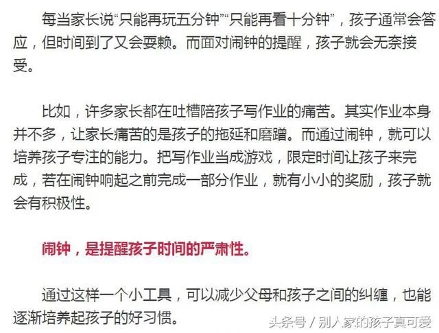 比如闹钟就特有用处,孩子不认识钟表也没有时间观念,父母再着急孩子也不在意,磨蹭磨蹭的,气死人。