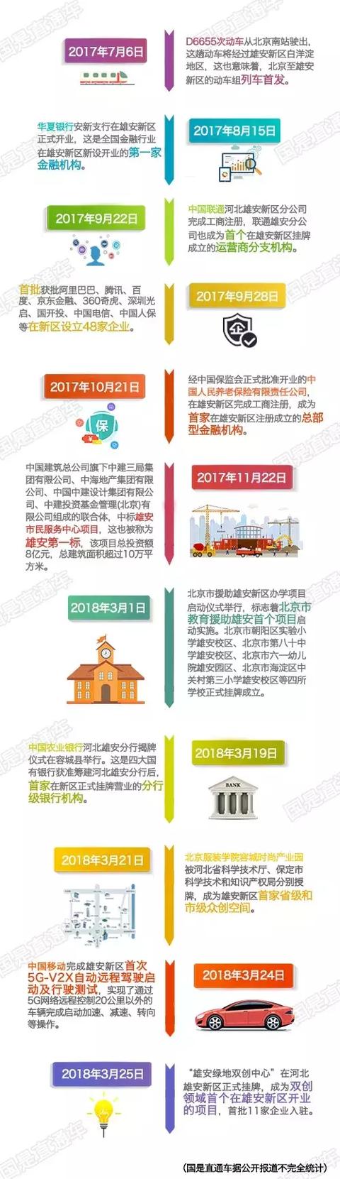 一年前的4月1日,设立雄安新区的消息横空出世。 雄安新区的计划一经公布便冠之以“千年大计、国家大事”,也让雄县、容城、安新这三个“名号”曾远不如毗邻的“白洋淀”响亮的小县城众人皆知。 中新社记者 翟羽佳 摄 来源:中新网 根据中央的部署,到2020年,新区对外骨干交通路网将基本建成,起步区基础设施建设和产业布局框架基本形成,雏形初步显现;到2030年,建成绿色低碳、信息智能、宜居宜业,具有较强竞争力和影响力,人与自然和谐共处的现代化城市。 从那时起,雄安新区的一举一动都牵动着公众的神经。这个新区怎么建?建成后到底是啥样? 2018年4月1日,雄安新区设立一周年。国是直通车试图从目前公布出来的消息中为大家寻找答案。 制图 侯雨彤 通过梳理可以看到,随着各项工作的稳步推进,新区的整体轮廓正日渐清晰。而按照规划,这座将打造成为世界级高端高新的产业集群正在有条不紊的推进中。 按照规划,雄安新区将优先布局人工智能、大数据、云计算、移动互联网等新一代信息技术产业,生物药研发、基因工程、高端医疗设备研发等生命科学和生物医药产业,先进电子材料、北斗卫星通信导航、信息安全、智能机器人等军民融合产业。 首批获批设立的48家企业中,阿里巴巴、腾讯、百度、京东金融等互联网巨头企业名列其中。新经济产业将成为雄安新区支柱产业,极大地带动新区产业结构的调整。 每天3000多工人施工,央企中建三局仅用83天即实现主体完工,雄安速度让附近的村民不禁感叹,“一天一个样,转眼间就建成了”。最新的消息是,总面积超过10万平方米,称为“雄安第一标”的雄安市民服务中心即将竣工。作为雄安新区面向全国乃至世界的窗口,雄安市民服务中心也是雄安新区功能定位与发展理念的率先呈现。 城市的建设发展,交通尤为重要。北京南至雄安新区动车的开通运行、京雄城际铁路的开工建设、京雄高速和荣乌高速雄安段的改造、“四纵两横”区域轨道交通网络和“四纵三横”区域高速公路网的规划,每一个项目的推进都预示着这个城市的勃勃生机。 要吸引优秀人才聚集,完善当地居民健康生活,医疗资源成为不可或缺的一部分。2017年8月,京、冀两地签署的战略合作协议显示,北京将推动优质医疗资源向雄安新区布局发展。 此外,北京市教育援助雄安首个项目正式启动实施;雄安绿地双创中心正式挂牌,11家企业入驻······数个“首次”似乎正在逐渐拼凑出一个充满活力、公共服务优质的智慧新城。 来源:国是直通车