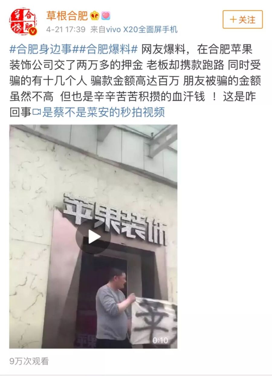 除了泥巴公社和柠檬树,近期,合肥集中性的出现几家知名装饰公司关门跑路:苹果装饰、一号家居网等。