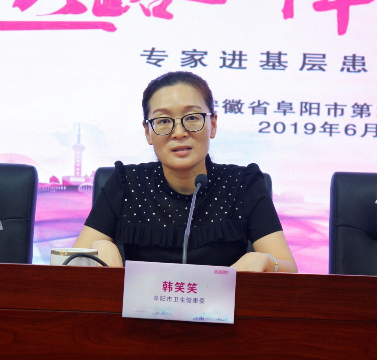 阜阳市卫健委秘书长韩笑笑致辞。在讲话中她表示中国红十字会基金会“医路相伴-专家进基层患者关爱项目”今天来到阜阳并在市妇女儿童举办,这对阜阳的患者来说是一种好事,对全市医疗卫生界来说是一件大事,红十字会一直以来把弘扬“人道、博爱、奉献”作为立会宗旨,为人类的生命健康、为世界的和平进步作出了很大的努力,得到了社会的高度认可。 本次活动能来到阜阳、来到阜阳妇女儿童医院,并通过查房、病例讨论、义诊等方式让患者不出阜阳就能享受权威知名专家的诊断和治疗,让相关专业医务人员足不出户就能学到本专业专家的诊疗技能和专业知识,并通过义诊活动惠及广大的患者。机会机遇甚是难得,希望妇儿医院的医务人员以本次活动为契机,精心准备、积极参与、认真学习,向专家虚心请教疑难病例和实际中遇到的问题,努力提升自身的专业能力和知识水平,为患者提供更加科学、更加合理、更加规范、更加优化的诊疗方案,逐步满足人民群众对医疗卫生、对健康和对美好幸福生活的需求。