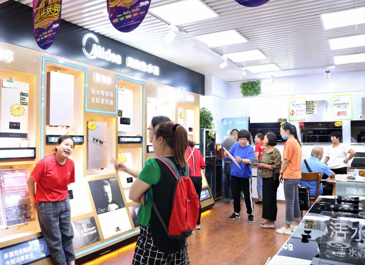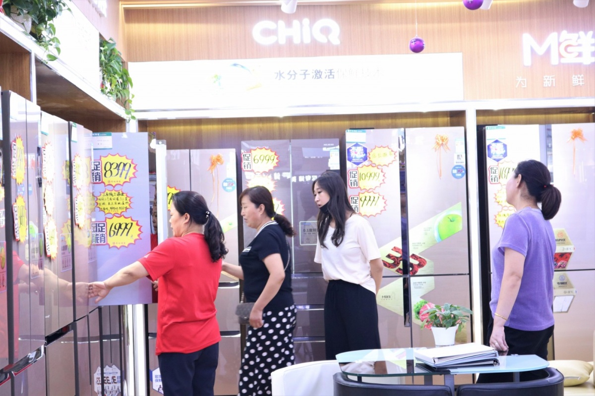 阜阳商厦电器卖场内各大品牌和专柜都迎来了一波又一波的人群,很多消费者都是提前看好了品牌和型号,等着店庆那天就直奔电器卖场下单,整个卖场内热闹非凡。
